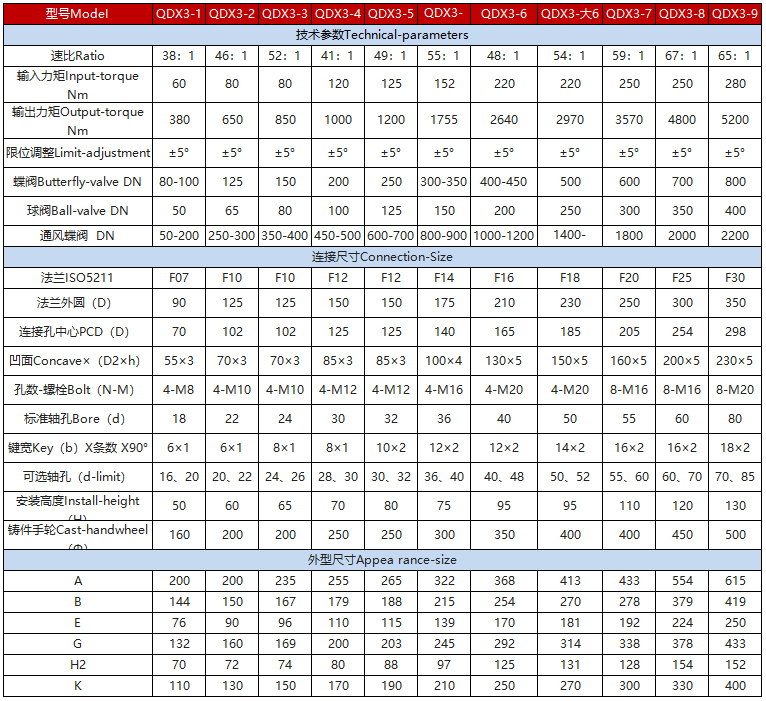 該系列是一款90°部分回轉(zhuǎn)驅(qū)動(dòng)裝置,適用于球閥、蝶閥、旋塞閥等類型閥門。該系列蝸輪箱適用環(huán)境廣、功能全面、形式多樣(有手輪式、手輪帶鎖式、鏈輪式等),特殊型可輸出360°多回轉(zhuǎn)。產(chǎn)品共有9種型號(hào)。